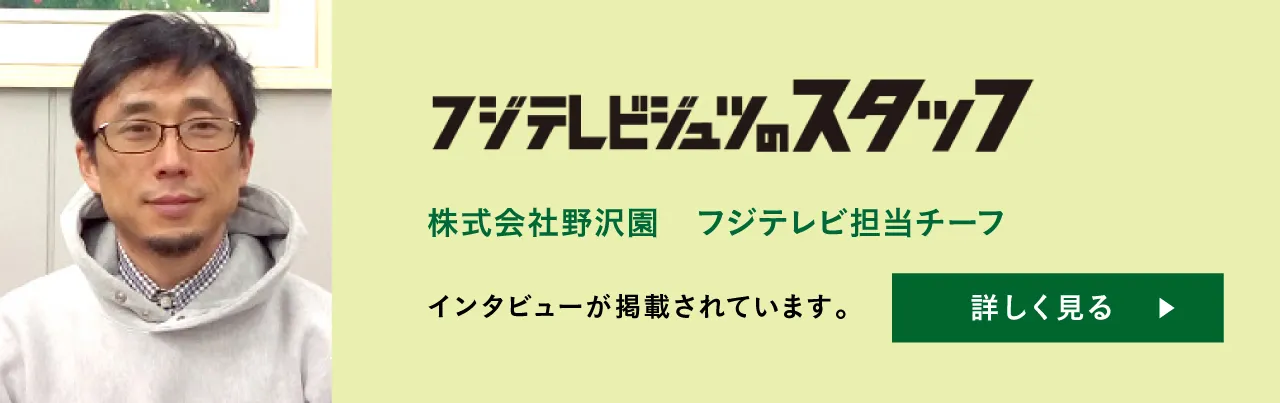 「美術さん」として、テレビ局の番組セットの植物の部分を装飾します。具体的には、フジテレビやテレビ東京などのドラマやバラエティーなどの植物装飾を行っています。またイベントやコンサートの植木装飾なども行います。